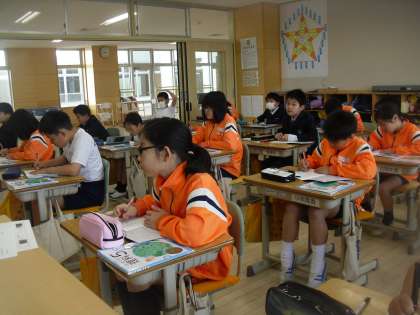 5年生は理科で「天気の変化」について学習しています。今日は日本のまわりの雲の動き方について話し合いました。
