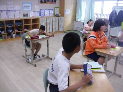 中CD組が合同で数学を行っていました。みんなで数字のゲームをしていました。