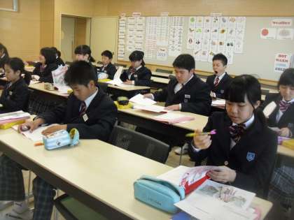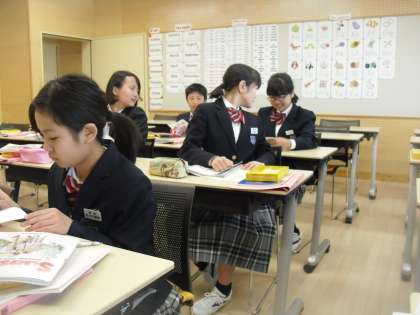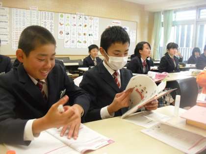 7年生が英語の学習を行っていました。6年生までは言語科「英語の時間」でしたので、少し学習が違ってきます。今日は英語のガイダンスを行っていました。