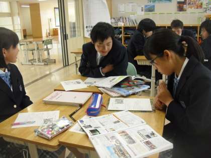 9年生は社会で世界史を学んでいました。今日は「なぜ世界恐慌をきっかけに第二次世界大戦になったのか」について、資料から読み取ったことを話し合いました。