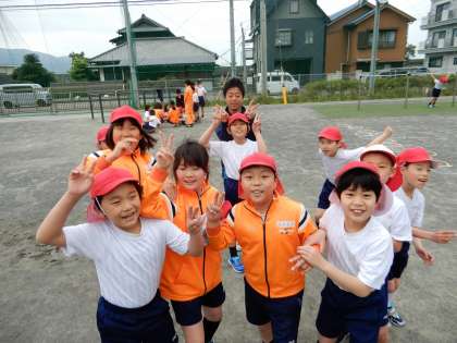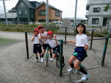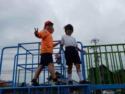 朝トレ後に鬼ごっこや遊具で朝運動です。みんな楽しそうですね。