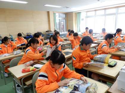 7Aは初めての美術の授業で、ガイダンスです。丹羽先生1年間よろしくお願いします。
