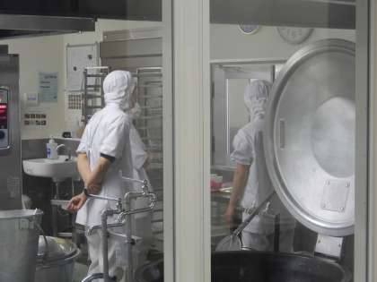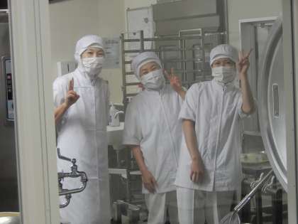調理場の様子です。いつも栄養のバランスを考えた、おいしい給食を皆さんに提供してくれています。ありがとうございます。