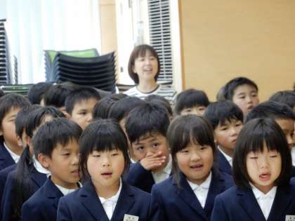 2年生から4年生が校歌を大きな声で歌ってくれました。1年生は一人一人、名前と好きなことを大きな声で発表できました。