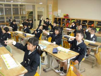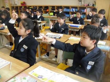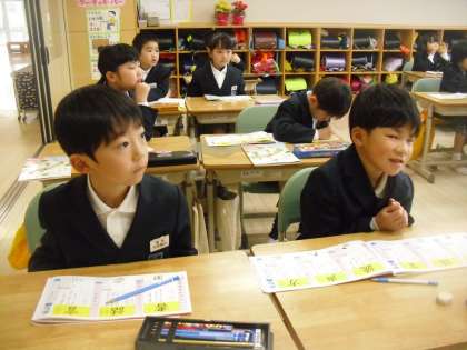 2年生は国語で新出漢字の練習を行っていました。みんなで書き順を確認していました。