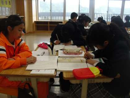 7年生は国語で「風呂場の散髪」という教材を学習しています。今日は「岳」という登場人物の気持ちについて考えたことを話し合いました。