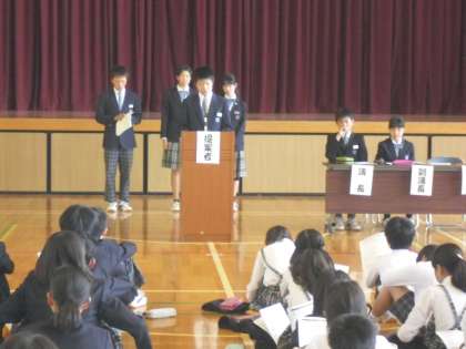 前期自治会執行部からスローガンとして「チェンジ チャレンジ あたりまえ」が発表され、前期の活動方針が提案されました。