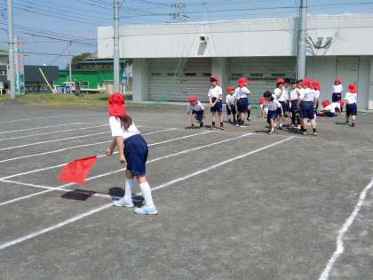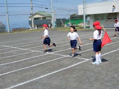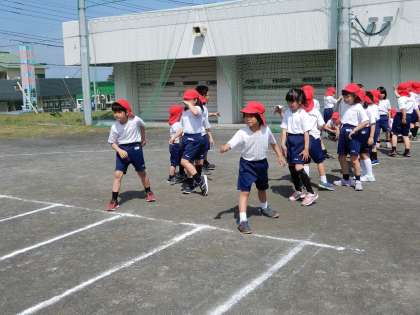 大グラウンドで50M走の練習です。みんな一生懸命走っています。
