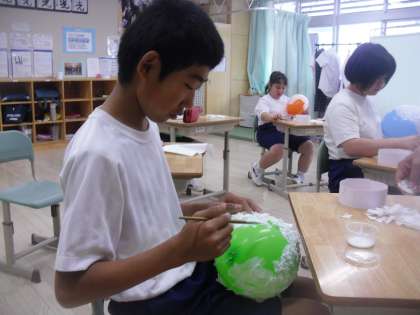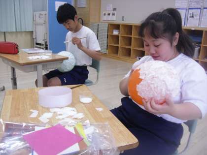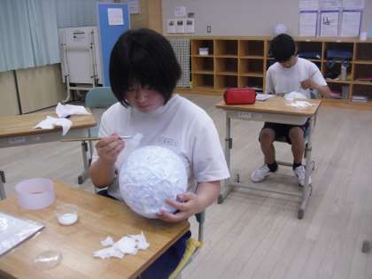 中CD組は美術でバルーンランプ制作を行っていました。みんな集中して取り組んでいます。