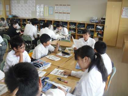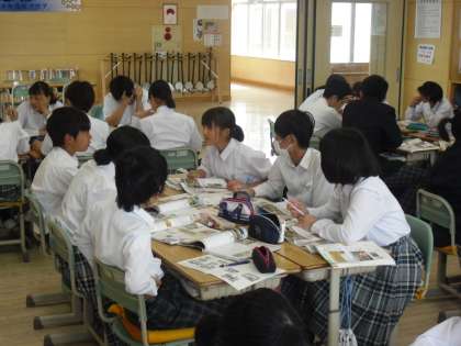 8年生は社会で「室町幕府の文化」について学習を進めました。最初に足利義満と足利義政について、教科書や資料集を使って調べ学習をしました。