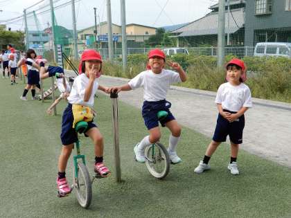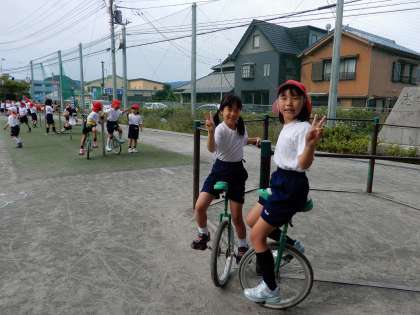 プレイグラウンドでは、一輪車がブームですね。