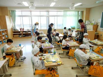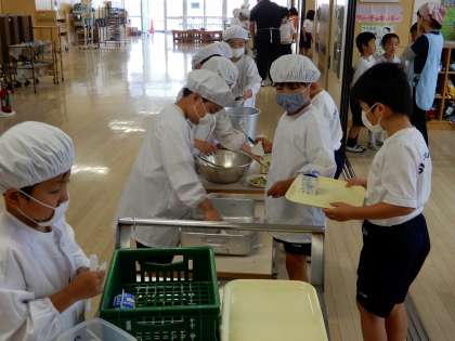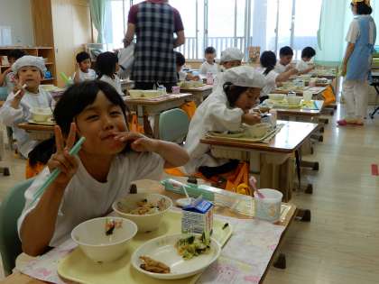 今週水曜日に新一年生の保護者対象に給食試食会を予定しております。お昼の顔です。