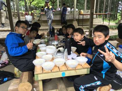 少しお米がかたい班もありましたが、シチューをかけて食べました。防災食の貴重な体験です。