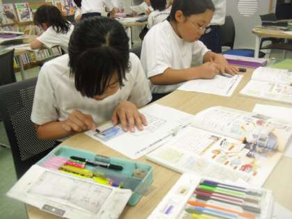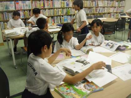 4年生は社会で「消防署の仕事」について学習しています。グループごとにプレゼン発表原稿作成を行っていました。