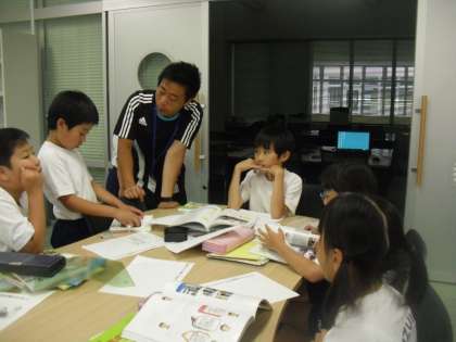 4年生は社会で「消防署の仕事」について学習しています。グループごとにプレゼン発表原稿作成を行っていました。