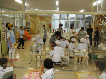 保護者が見守る中、1年生は手際よく準備を進めていました。