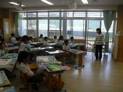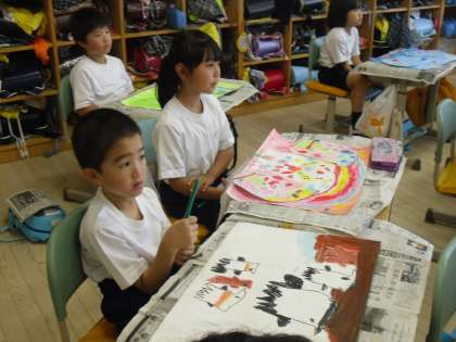 たまごを描いてのふしぎな絵をかいています。どんなことを意識するといい絵になるのか考えています。