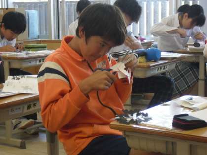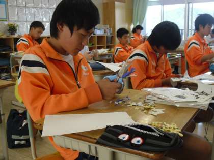 保育分野で、切り絵を制作しています。小さな子どもたちが喜びそうな絵にするためいろいろな工夫が見られます。