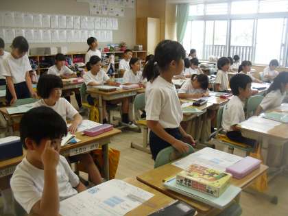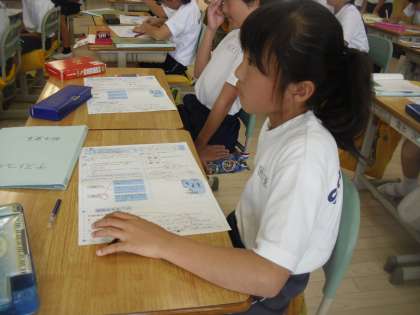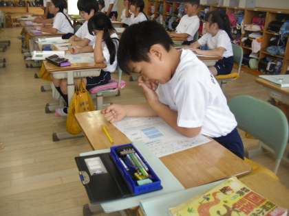 4年生は国語で単元テストの返却があり、みんなで答えを確認しました。復習として「〜どころか〜」を使って、短文を作って紹介しあいました。