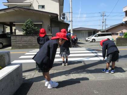 「道路に飛び出してはいけない」は、どの子も頭では分かっています。しかし、行動レベルで、何をするのかが明確ではありません。そこで、具体的な行動として、「道路に出るときは、まず止まろう。」「次に、右と左を見て、車が来なかったら渡ろう。」を繰り返し指導していくことが、より子どもたちの意識に残り行動に結びつくのではないかと思われます。学校でも下校する前に交通安全指導をしていきます。