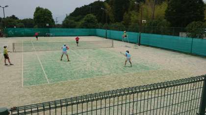 大木・伊海ペアが一回戦です。浜松引佐南部中との試合、1セット先取しました。