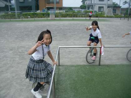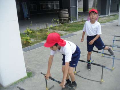 小学生の朝の活動の様子です。初志部は朝のサーキットトレーニングを行っていました。終わった子からそれぞれの活動に入ります。