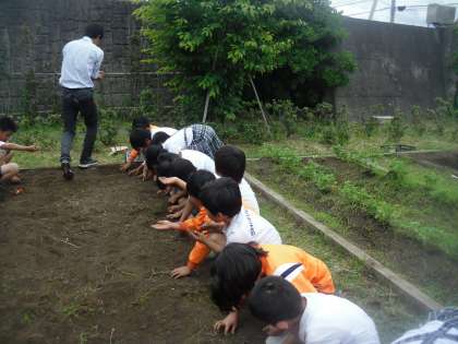 3年生は理科で「たねをまこう」という教材を学習しています。今日は学級園にひまわりの種を蒔きました。