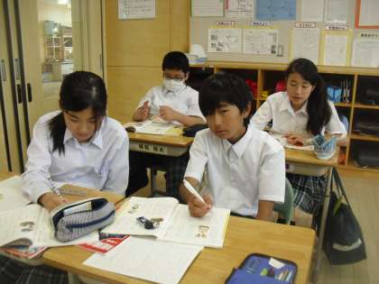6年生は国語で接続語の働きについて考えました。順接、逆接等の用語も学習し、それを使った短文作りを行いました。