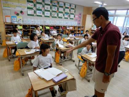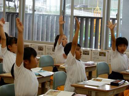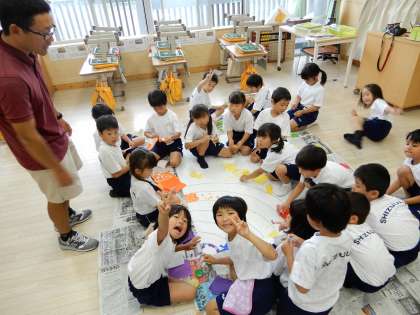 国語は話し方の学習で、匡崇先生から質問されるとみんなスムーズに答えていました。3時間目は学級目標を、皆で協力して制作していました。完成が楽しみですね。それにしても手の上げ方が大変すばらしいです。