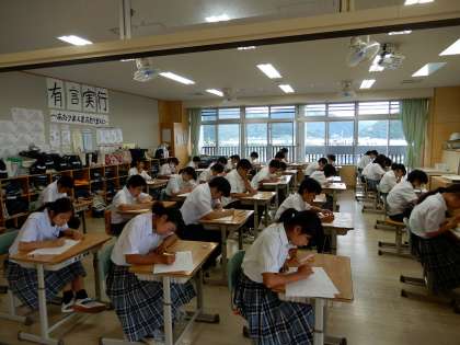 期末テスト 数学のテストから始まりました。頑張ってください。