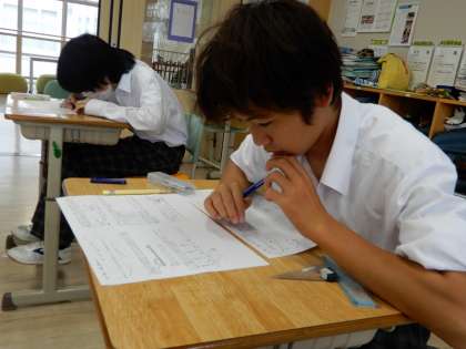 期末テスト一日目 数学のテストから始まりました。受験生一問一問を大切に頑張ってください。