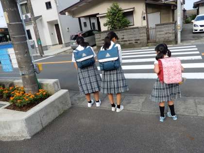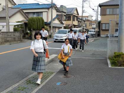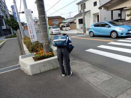 期末テスト2日目です。問題集を片手に登校してくる子もいます。横断歩道を渡り終えた後の礼も伝統です。