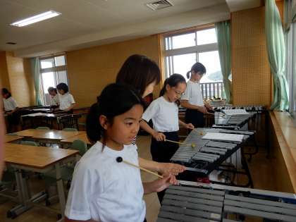 5,6年生が上級生と一緒にクラブ活動です。まずは、文化芸術部、吹奏楽部です。
