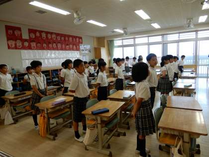激励会に向けて応援団が、朝の会に初志部教室で校歌の練習に来てくれています。ありがとうございます。応援団に負けずに、感謝の気持ちで先輩方を応援しましょう。