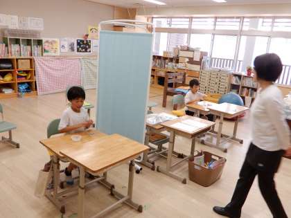 小Cは作業学習を実施しています。中C,Dは道徳の授業です。暑くなってきましたが、頑張っています。