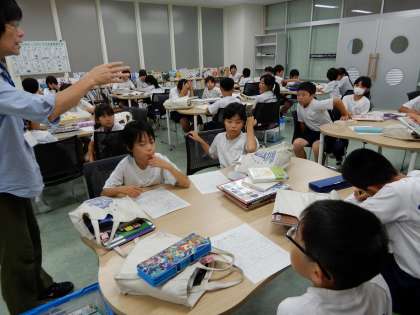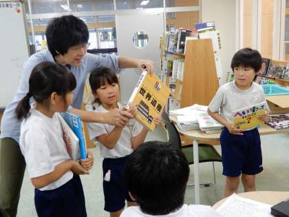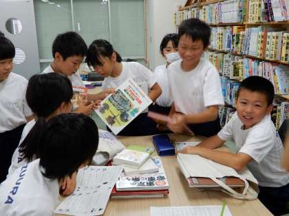 本の分類の学習です。自分が好きな本がどの分類なのか。グループでクイズ大会です。