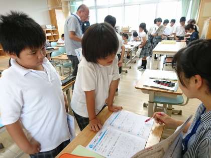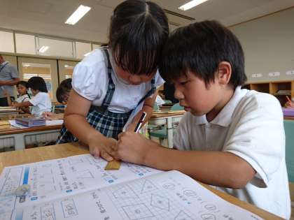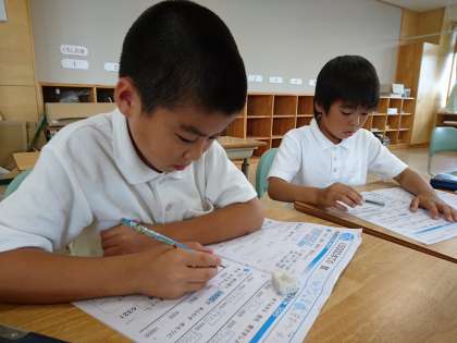 3年生はどの子も真剣に取り組んでいました。学習支援の先生方も子どもたちの様子を見守っています。