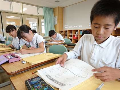 3年生はどの子も真剣に取り組んでいました。学習支援の先生方も子どもたちの様子を見守っています。