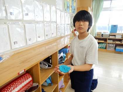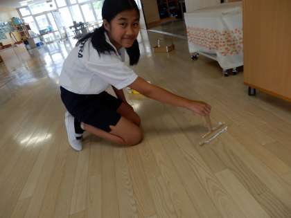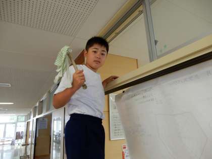 自分でアイディアを出して制作した清掃用事で実際に清掃をしています。みんな工夫して制作しました。