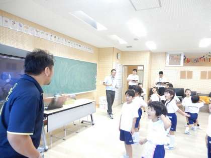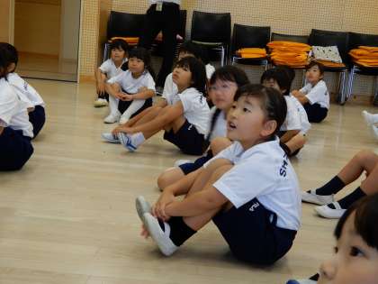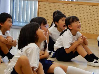 育てている朝顔の花の色を相手に伝えるために、ALTの発音を注意深く聞いたり、自分の朝顔を想像しながら、発音したりしています。