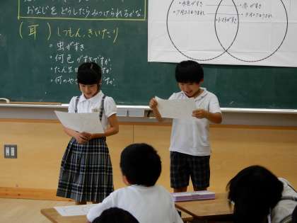「友だちと自分を比べてみよう」目には見えない情報を集めるため、直接聞いてみる活動をしたことを発表しています。