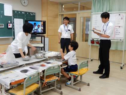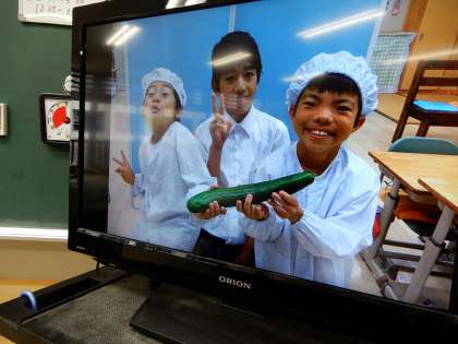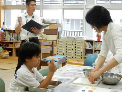 「畑で採れた野菜を作ってみよう」どんな色や形にすればよいか粘土で制作しています。