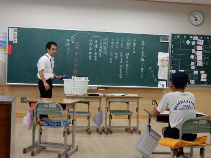 「暑中お見舞いの内容を決めよう」お世話になった先生方に自分が、一学期頑張ったことなどを書いていきます。