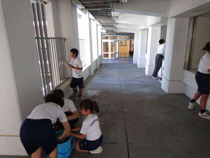 武道場・体育館通路など普段出来ないところを清掃しました。