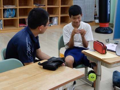 知恵の輪を利用して指先の訓練をしています。