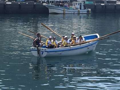 静浦漁港の皆様のご指導のもと、第五回カッターボート体験を開催しました。艇長の掛け声の元、6人の心を一つにしてかいを漕ぎます。