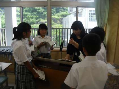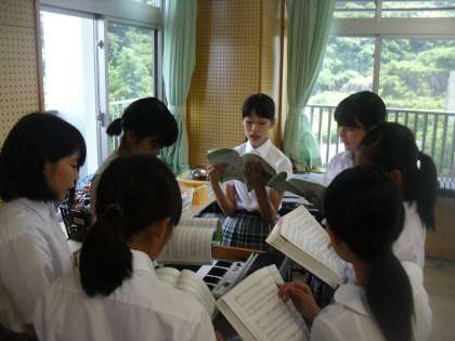 7年生は音楽で黒潮祭合唱曲の練習をしています。合唱曲「My Own Rord 〜僕が創る明日〜」の構成を考えながら、パート練習を行っていました。