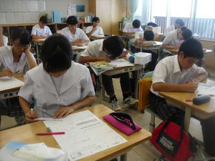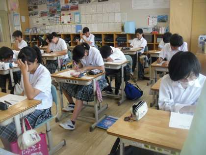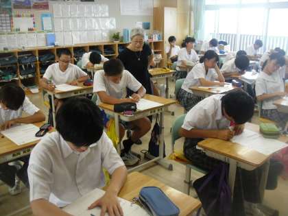 9年生は数学で「平方根」の単元テストを行っていました。さすが9年生、みんな集中しています。