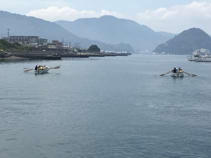 第5回カッターボートレース体験を5,6年生が、6レースをタイムレースで実施しました。優勝したチームは艇長を中心に見事なチームワークでした。おめでとうございます。どの艇も6人が、艇長の掛け声でかいを心を一つにして一生懸命漕いでいました。