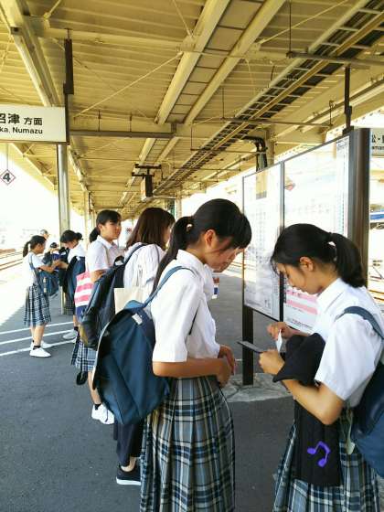 焼津市民文化センターでのホール練習を終え、吹奏楽部の生徒が沼津に戻ります。これから電車に乗ります。